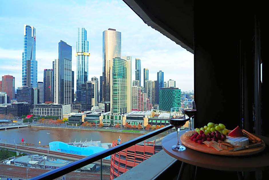 Aura on Flinders Serviced Apartments offers more than a place to sleep along the Yarra. A range of apartment configurations is available, from 1-bedroom to 3-bedroom layouts, with River View or City View options to suit groups or families. Each stay includes a balcony and a fully equipped kitchen, plus air conditioning and non-smoking rooms for year-round comfort.
